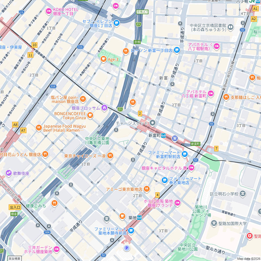 ・地下鉄日比谷線 築地駅 4番出口 徒歩5分
